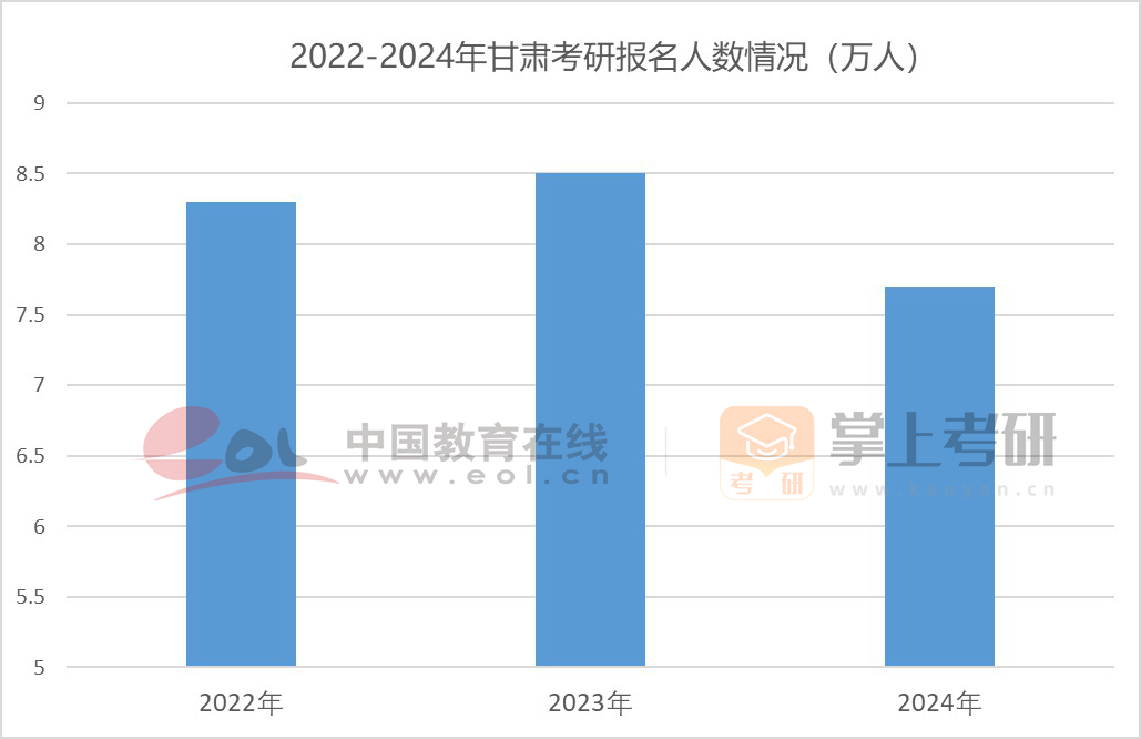 甘肅省2024年研考報考人數(shù)共有7.69萬人,比2023年減少0.81萬人,降幅9.6%。