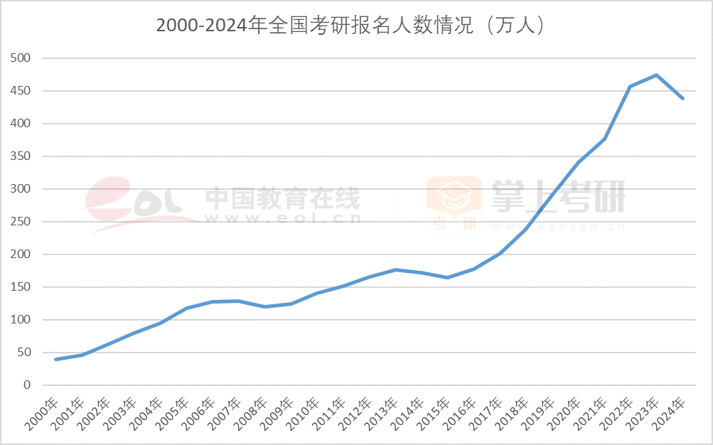 2024年全國碩士研究生招生考試報名人數(shù)為438萬。比2023年的報名人數(shù)474萬減少了36萬人,這也是考研報名人數(shù)自2015年起持續(xù)、快速增長以來的首次下降?!翱佳袩帷苯禍兀诧@示出考生報考日趨理性。