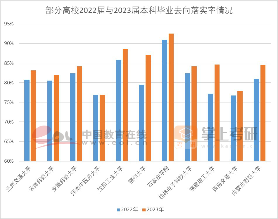 12月以來,各高校陸續(xù)公布2022-2023學(xué)年本科生教學(xué)質(zhì)量報告,從其中披露的2023屆畢業(yè)生就業(yè)情況看,2023年應(yīng)屆本科畢業(yè)生就業(yè)去向落實(shí)率同比均有所提高,整體上好于上年。
