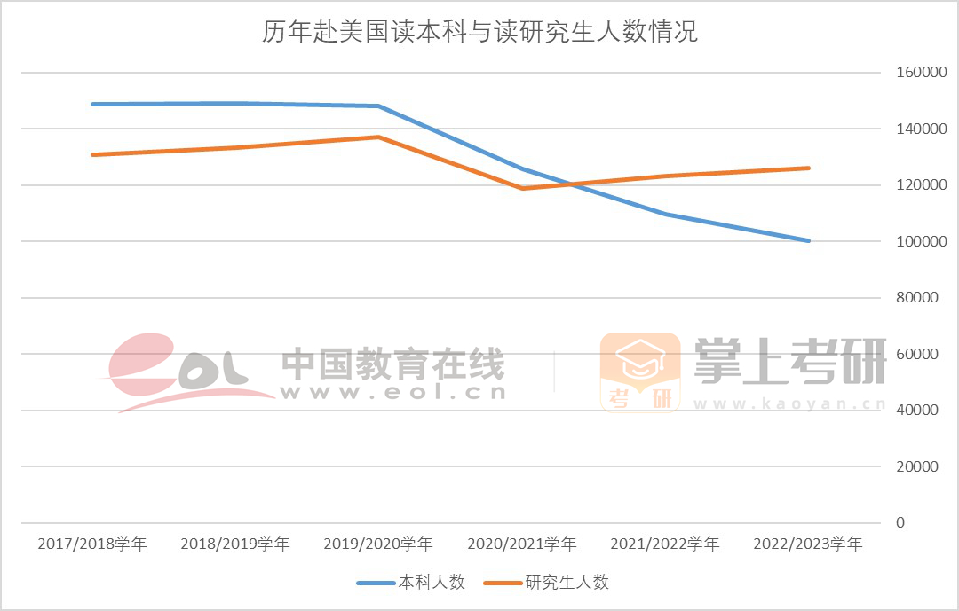 根據(jù)美國國際教育協(xié)會和美國國務(wù)院教育與文化事務(wù)局發(fā)布的《2023年度美國門戶開放報告》顯示,中國大陸依舊是美國國際生最大生源地。2022-2023學(xué)年中國大陸留學(xué)生赴美讀研究生學(xué)位的人數(shù)為126028人,占中國大陸赴美留學(xué)生總數(shù)的43.52%,占比上升2.3%。赴美讀研人數(shù)雖然沒有回到疫情前水平,但已經(jīng)率先迎來反彈,并與赴美讀本科學(xué)位的人數(shù)進(jìn)一步拉大。