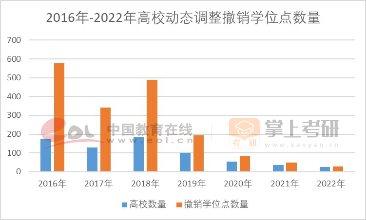 據(jù)統(tǒng)計,自2016年10月學(xué)位點動態(tài)調(diào)整結(jié)果首次公布,到2023年9月教育部公布《2022年動態(tài)調(diào)整撤銷和增列的學(xué)位授權(quán)點名單》,7年時間已開展7次學(xué)位點動態(tài)調(diào)整。