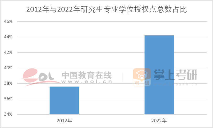 人才培養(yǎng)規(guī)模上,專業(yè)學(xué)位授予人數(shù)占比從2012年的32.29%增至2022年的56.4%。