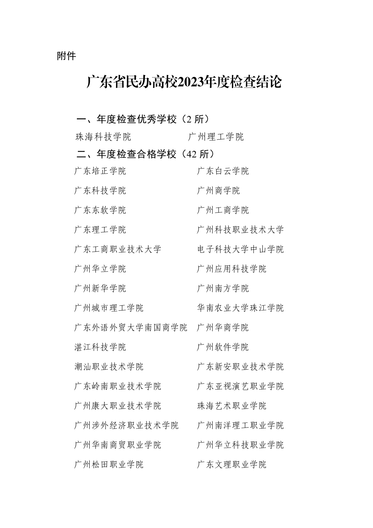 廣東省民辦高校2023年度檢查結(jié)論如下: