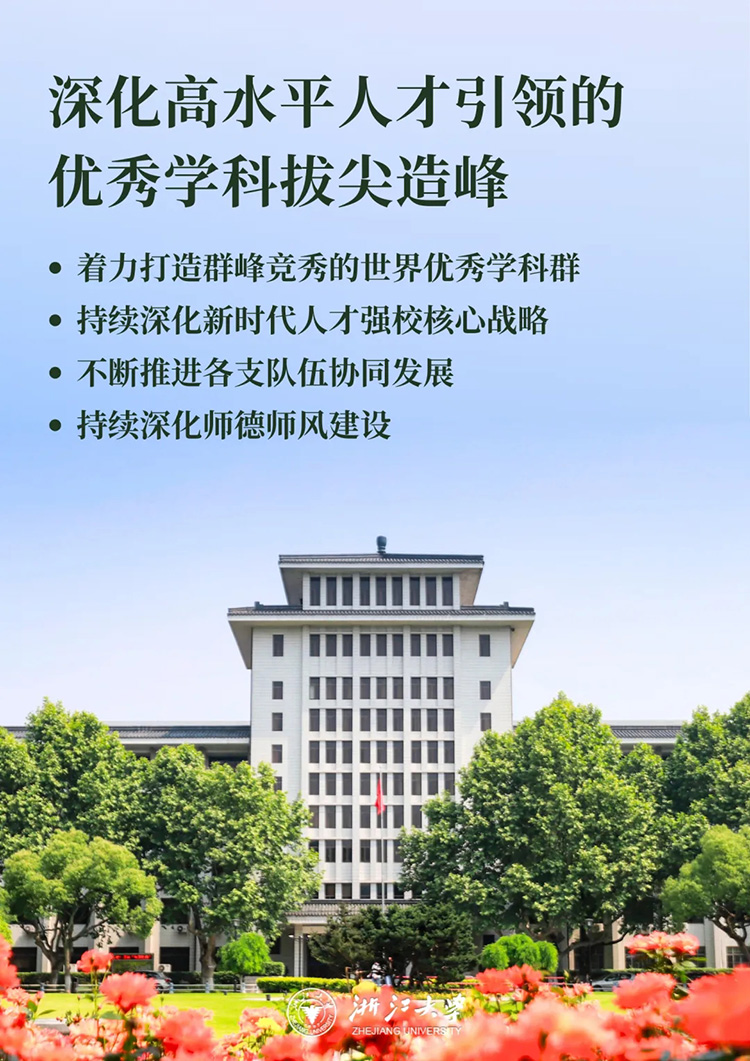 今年學(xué)校將以習(xí)近平新時代中國特色社會主義思想為指導(dǎo),深入學(xué)習(xí)貫徹黨的二十大和二十屆二中、三中全會精神,學(xué)習(xí)貫徹全國教育大會精神、全國科技大會精神和習(xí)近平總書記對浙大的重要指示精神,全面加強黨建和思想政治工作,堅持使命引領(lǐng)的戰(zhàn)略型發(fā)展,推進戰(zhàn)略謀劃、組織與實施,深化教育科技人才體制機制一體改革,高水平推進“雙一流”建設(shè),團結(jié)奮斗、勇攀高峰,推動學(xué)校改革發(fā)展事業(yè)邁上新臺階,為以中國式現(xiàn)代化全面推進中華民族偉大復(fù)興作出更大貢獻。