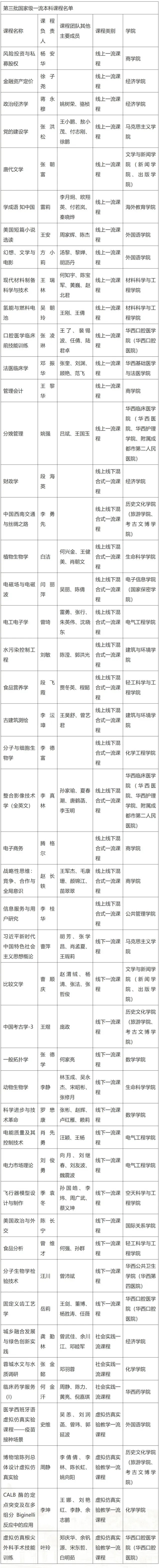 第三批國(guó)家級(jí)一流課程名單詳見下表: