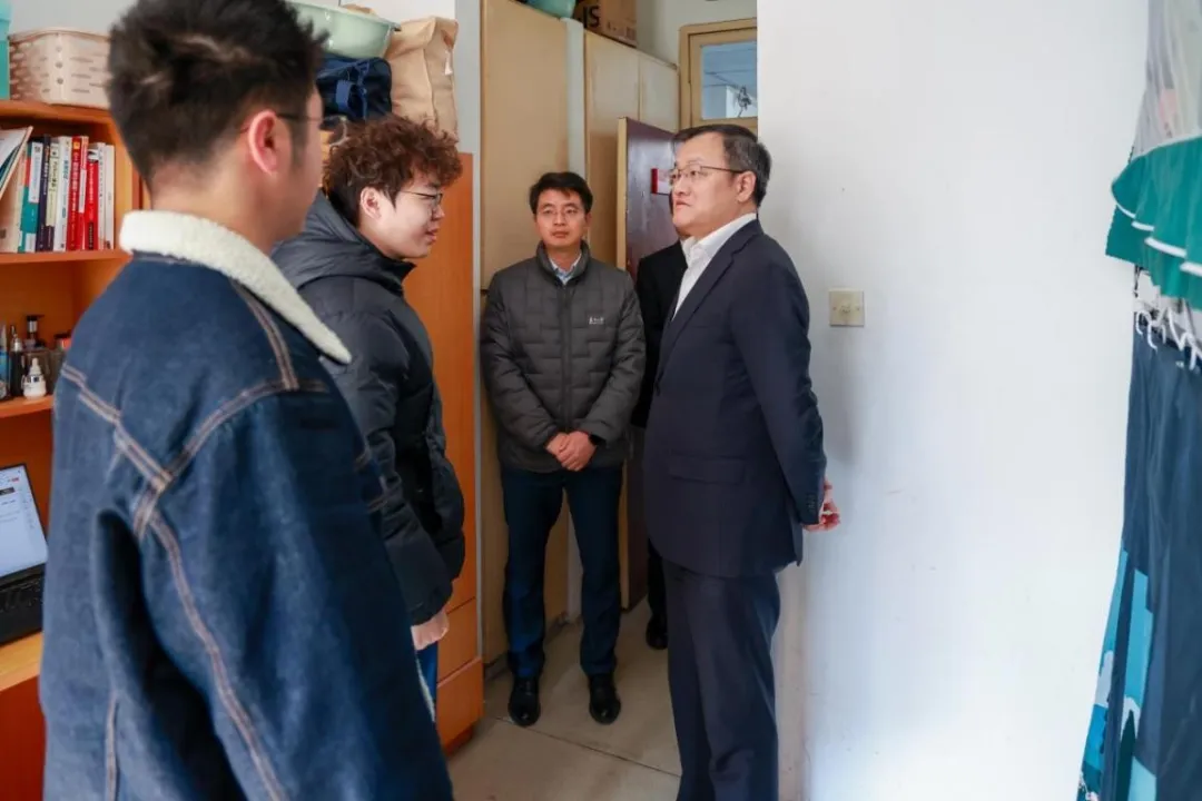 杜江峰一行在天賜莊校區(qū)沿路考察了東吳門、鐘樓、博物館等標(biāo)志性建筑,聽取了學(xué)校歷史沿革、文物保護(hù)傳承等情況介紹。調(diào)研過程中,杜江峰詳細(xì)了解蘇州大學(xué)的辦學(xué)歷程和人才培養(yǎng)、科學(xué)研究、社會服務(wù)等方面的建設(shè)成效,以及校企協(xié)同推進(jìn)科技創(chuàng)新、促成技術(shù)成果轉(zhuǎn)化等方面的特色做法。杜江峰一行還實(shí)地走訪了蘇州大學(xué)敬文書院,聽取了書院“育人為本、德育為先、個(gè)性培養(yǎng)、全面發(fā)展”的建設(shè)理念和一站式學(xué)生社區(qū)建設(shè)情況介紹,并與寒假留校學(xué)生面對面交流。
