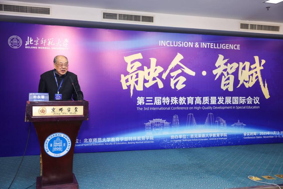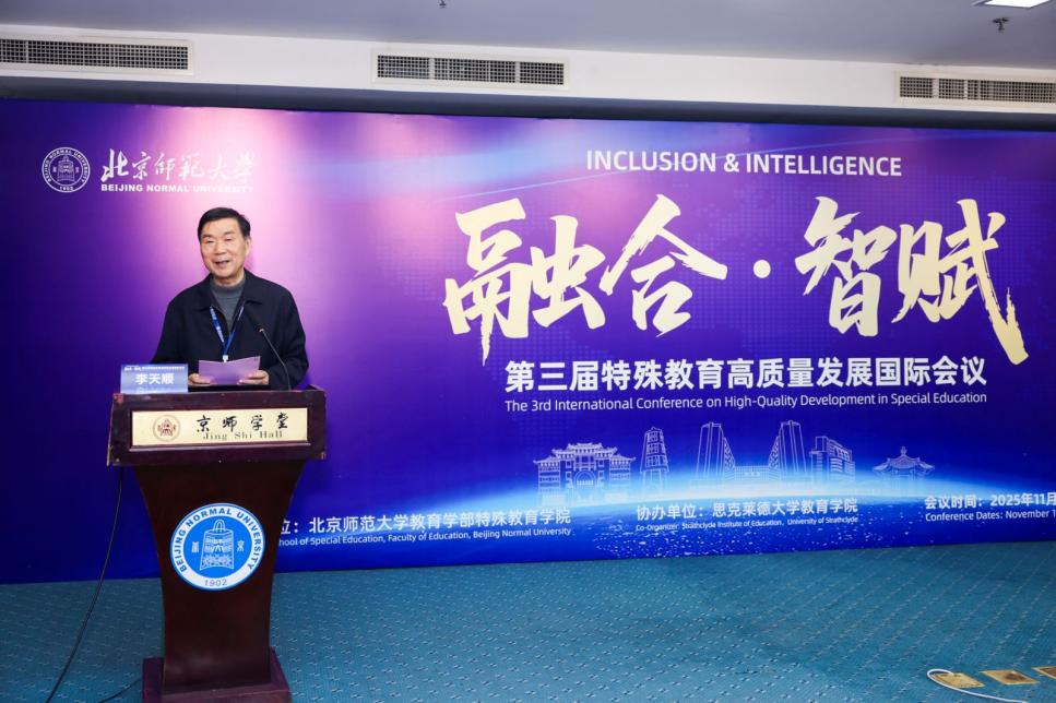 2025年11月13日,由北京師范大學(xué)教育學(xué)部特殊教育學(xué)院主辦、思克萊德大學(xué)教育學(xué)院協(xié)辦的“融合·智賦:第三屆特殊教育高質(zhì)量發(fā)展國(guó)際會(huì)議”在北京師范大學(xué)隆重召開(kāi)。本次大會(huì)以“融合”與“智賦”為主題,聚焦人工智能、教育神經(jīng)科學(xué)、融合教育環(huán)境等前沿議題。來(lái)自中國(guó)、英國(guó)、美國(guó)、新加坡等多個(gè)國(guó)家和地區(qū)的專家學(xué)者、教育工作者齊聚北師大,共話特殊教育前沿發(fā)展,共研人工智能賦能“普特融合”與“教學(xué)創(chuàng)新”,共探特殊教育在數(shù)字化時(shí)代的高質(zhì)量發(fā)展路徑。