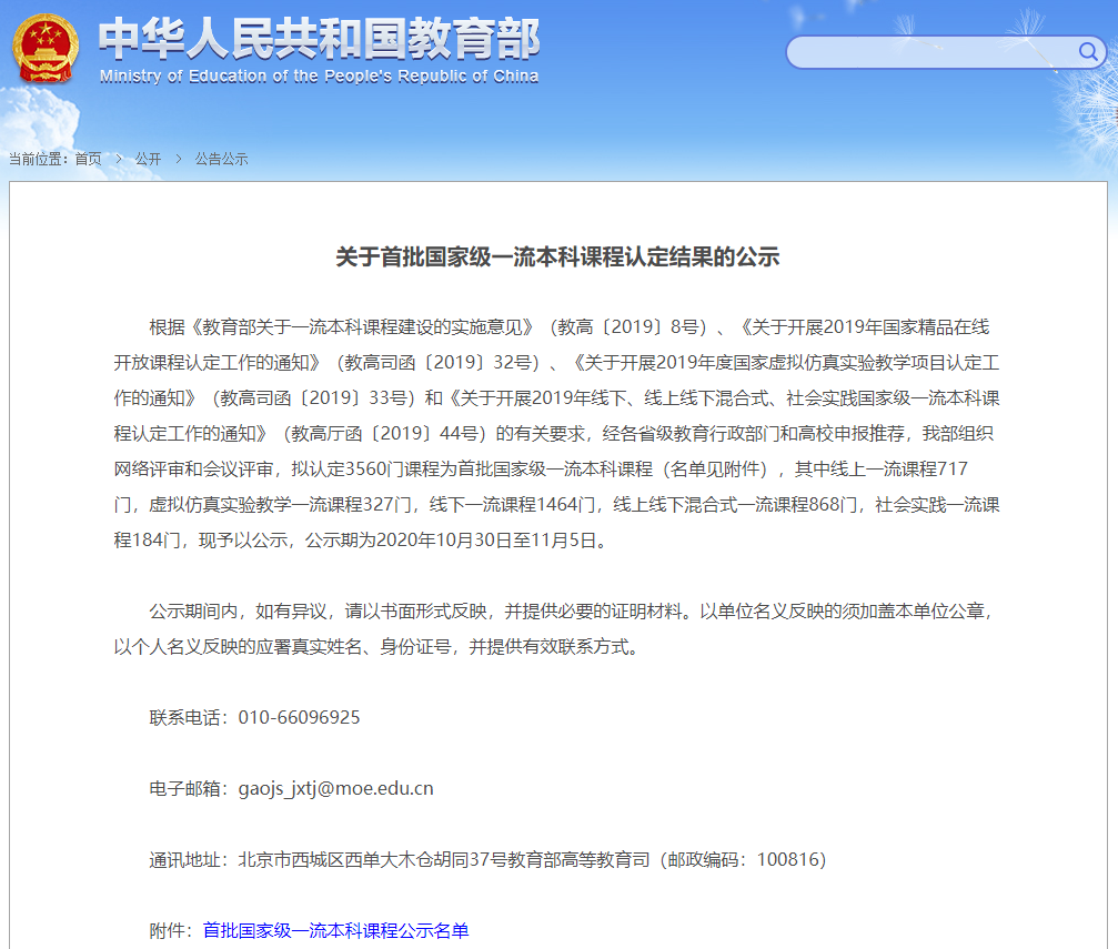 詳細(xì)名單請點擊:首批國家級一流本科課程認(rèn)定結(jié)果