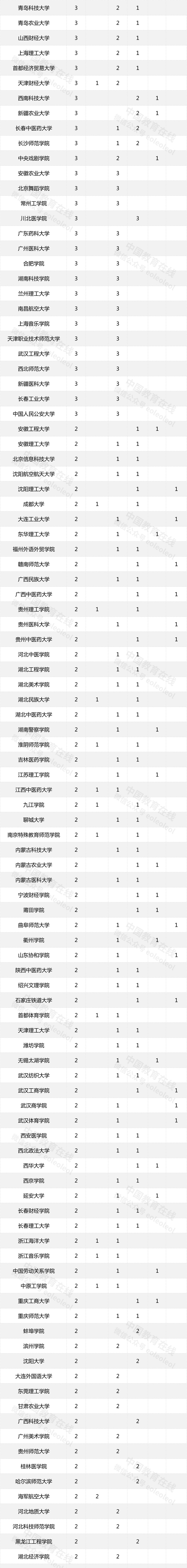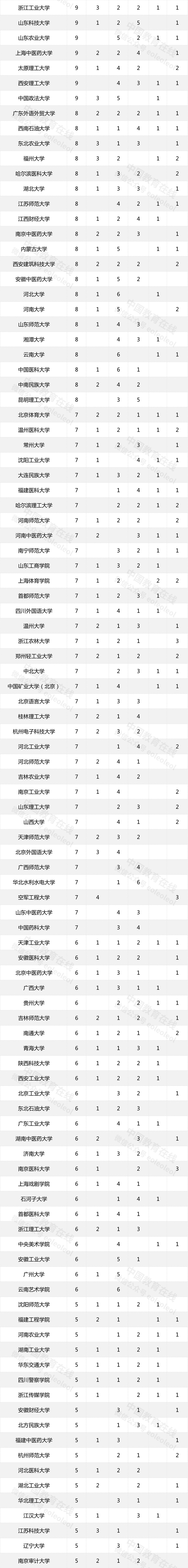 被擬認(rèn)定為國家級一流本科課程數(shù)超過30門的高校有華中科技大學(xué)、中南大學(xué)、天津大學(xué)、武漢大學(xué)、北京師范大學(xué)、上海交通大學(xué)、吉林大學(xué)、復(fù)旦大學(xué)、東南大學(xué)、同濟(jì)大學(xué)、哈爾濱工業(yè)大學(xué)。