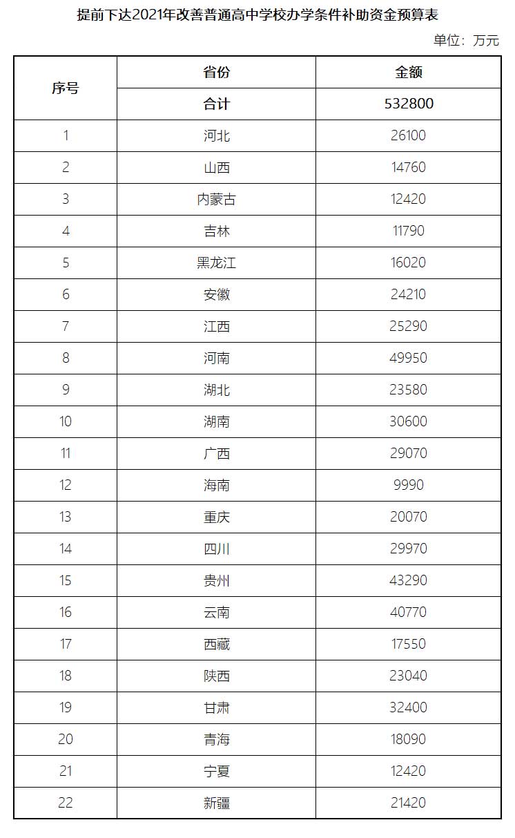 附件:提前下達2021年改善普通高中學(xué)校辦學(xué)條件補助資金預(yù)算表