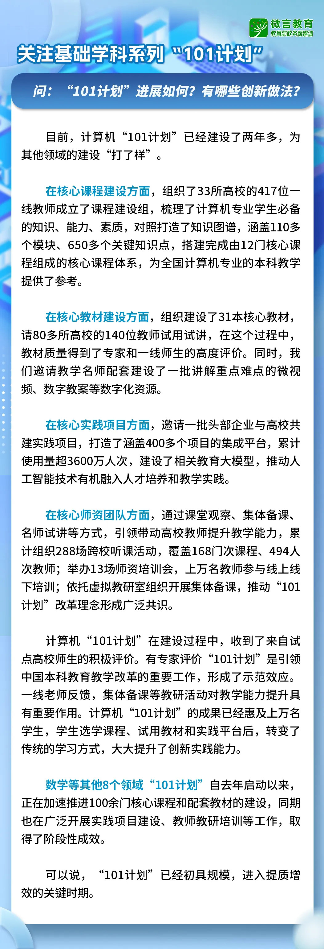 近日,基礎(chǔ)學(xué)科系列“101計(jì)劃”工作推進(jìn)會(huì)暨計(jì)算機(jī)“101計(jì)劃”成果交流會(huì)在京召開(kāi),明確相關(guān)重點(diǎn)任務(wù)?;A(chǔ)學(xué)科系列“101計(jì)劃”究竟是什么?為什么叫“101計(jì)劃”?瞄準(zhǔn)的目標(biāo)是什么?有哪些創(chuàng)新做法?一組大圖帶你了解——