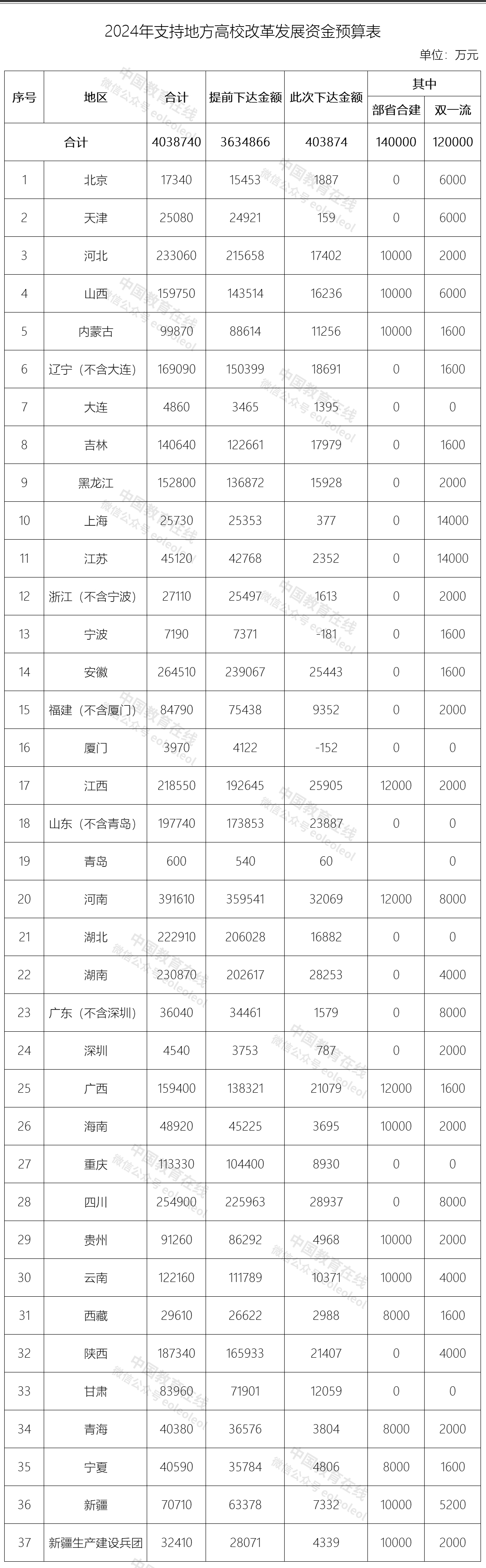 2024年支持地方高校改革發(fā)展資金預(yù)算表如下:
