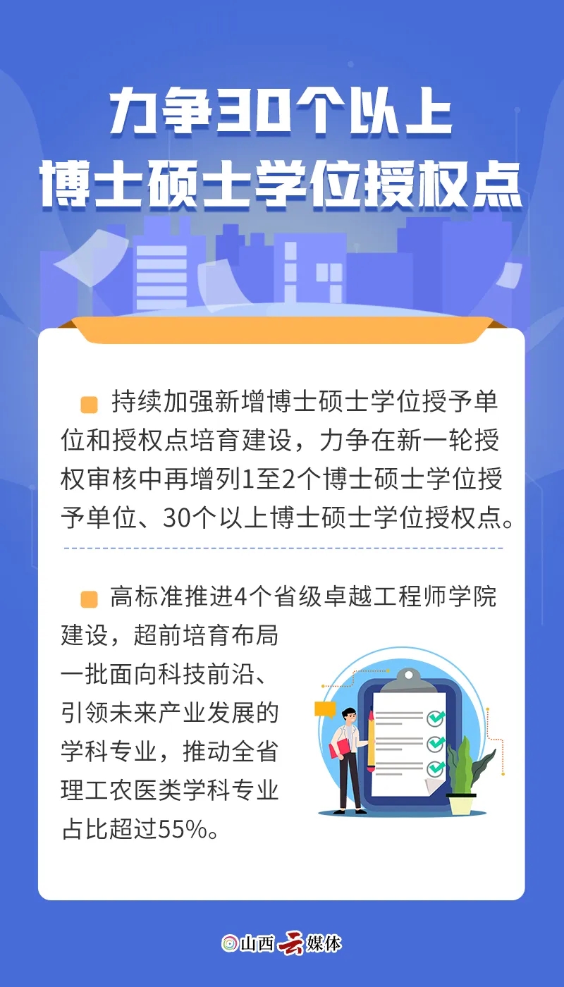 二是聚焦教育科技人才一體發(fā)展,深入推進實施百億工程,持續(xù)優(yōu)化高校布局結構,加快調(diào)整學科專業(yè),系統(tǒng)推進高校科技創(chuàng)新,著力構建現(xiàn)代職業(yè)教育體系,多措并舉促進高校畢業(yè)生就業(yè)創(chuàng)業(yè),在支撐全省全方位轉型上展現(xiàn)更大作為。