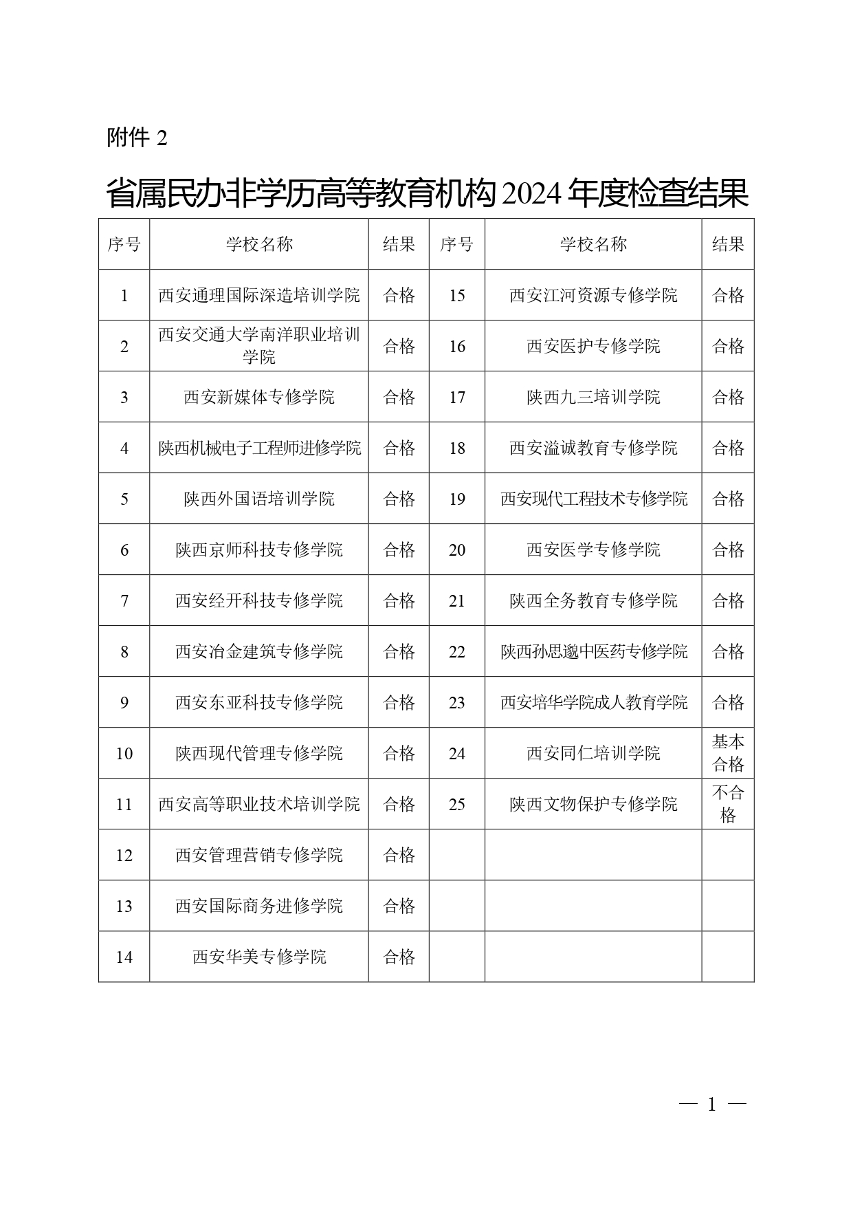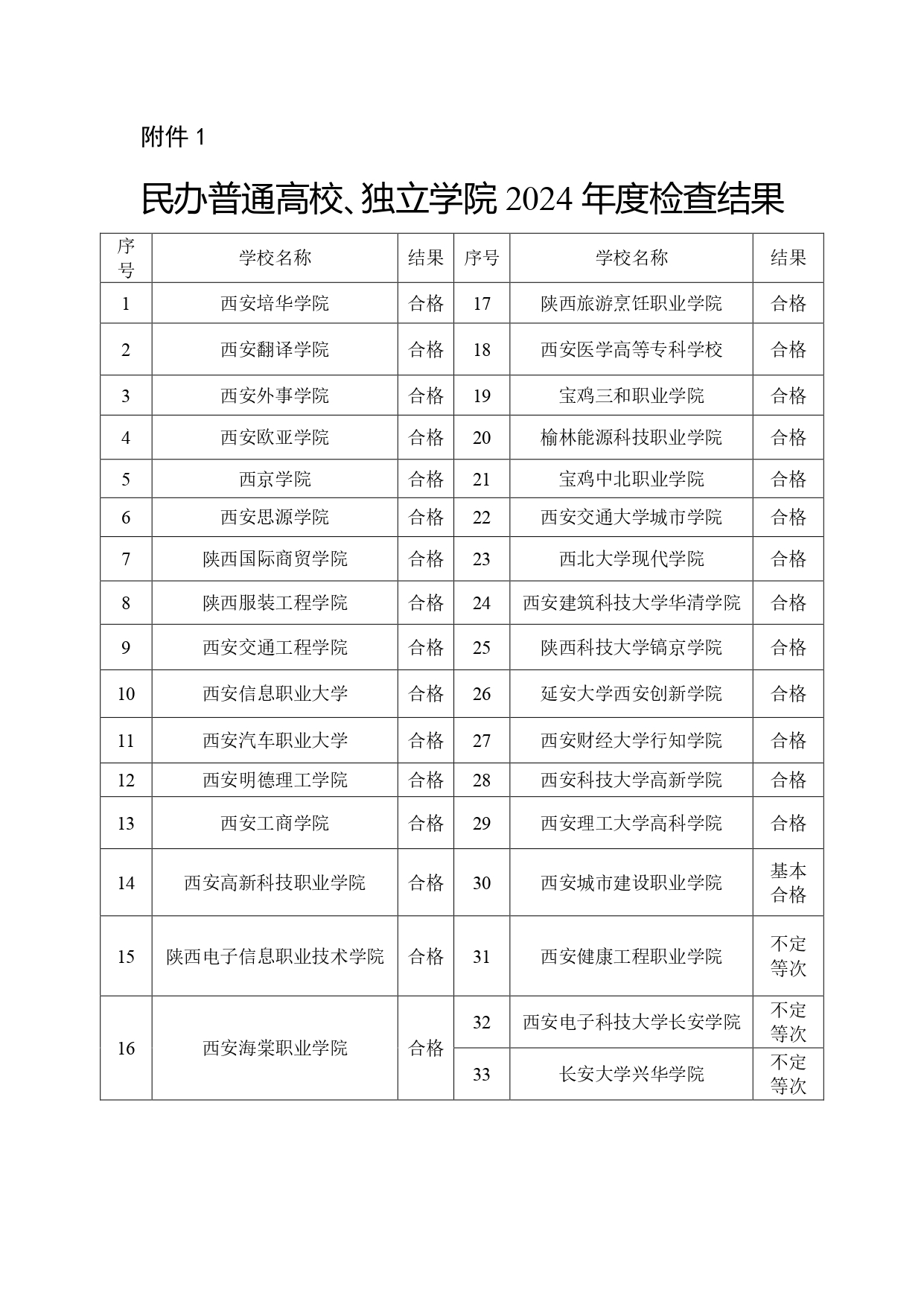 根據(jù)各專家組意見,結(jié)合日常管理情況,經(jīng)2025年第6次廳務(wù)會(huì)議研究決定,西安培華學(xué)院等21所民辦高校和西安交通大學(xué)城市學(xué)院等8所獨(dú)立學(xué)院年檢結(jié)果為“合格”等次,西安城市建設(shè)職業(yè)學(xué)院年檢結(jié)果為“基本合格”等次,西安健康工程職業(yè)學(xué)院、西安電子科技大學(xué)長(zhǎng)安學(xué)院、長(zhǎng)安大學(xué)興華學(xué)院3所學(xué)校不確定年檢結(jié)果等次;西安通理國(guó)際深造培訓(xùn)學(xué)院等23所民辦非學(xué)歷高等教育機(jī)構(gòu)年檢結(jié)果為“合格”等次,西安同仁培訓(xùn)學(xué)院年檢結(jié)果為“基本合格”等次,陜西文物保護(hù)專修學(xué)院年檢結(jié)果為“不合格”等次。