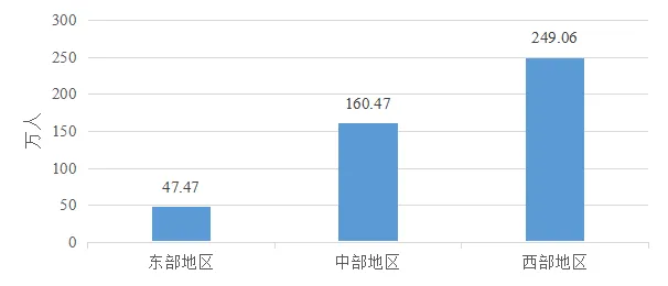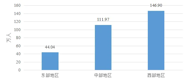 2024年,全國有302.91萬名中等職業(yè)教育學生享受國家助學金政策。其中,西部地區(qū)資助146.90萬人,占48.50%;中部地區(qū)資助111.97萬人,占36.96%;東部地區(qū)資助44.04萬人,占14.54%。