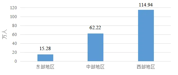 從區(qū)域來看,西部地區(qū)資助30.40億元,占49.13%;中部地區(qū)資助22.68億元,占36.65%;東部地區(qū)資助8.80億元,占14.22%。