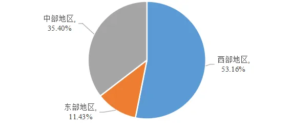 從區(qū)域來看,西部地區(qū)資助12.60億元,占53.16%;中部地區(qū)資助8.39億元,占35.40%;東部地區(qū)資助2.71億元,占11.43%。