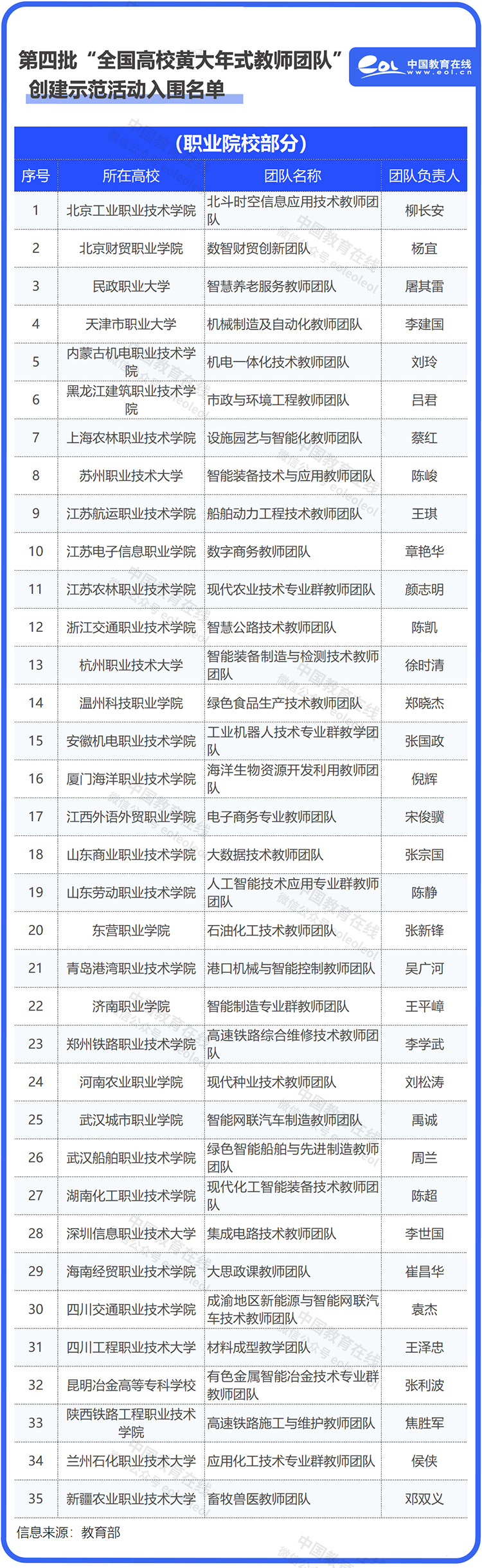 35所職業(yè)院校進入第四批“全國高校黃大年式教師團隊”入圍名單