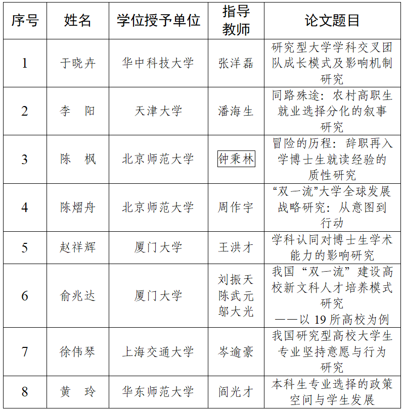 8篇博士學位論文入選“中國高等教育學會學術創(chuàng)新計劃——高等教育學博士學位論文文庫”