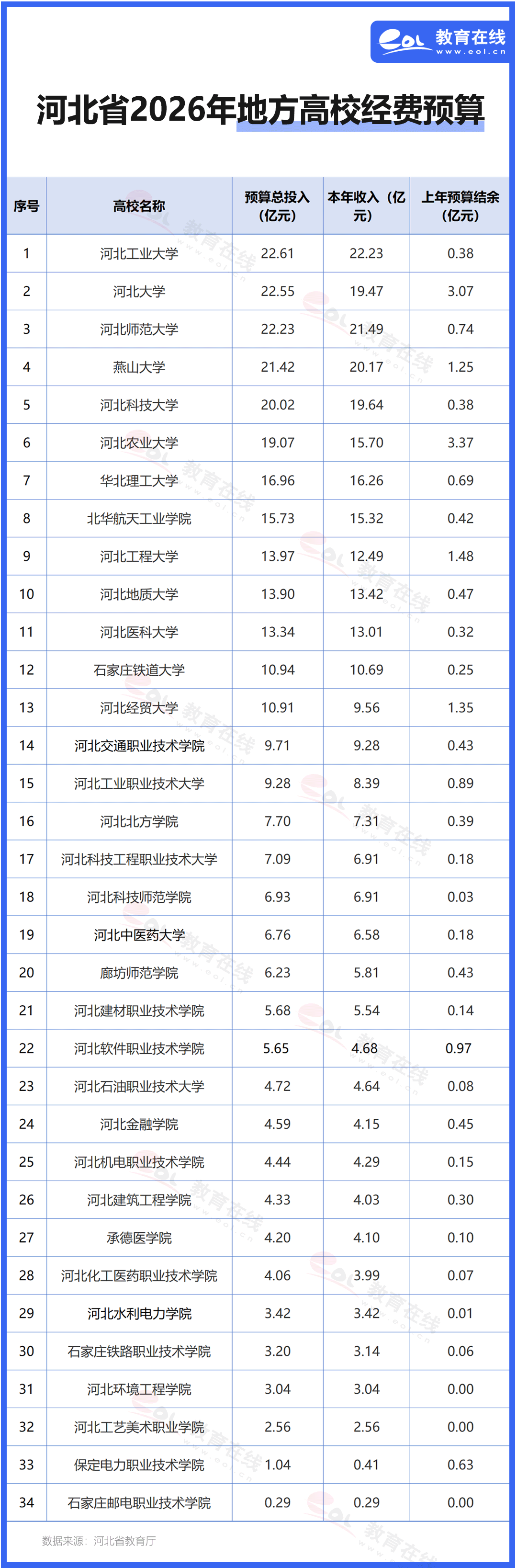 近日,河北省教育廳公布了2026年所屬單位預(yù)算信息,其中包含了34所高校。