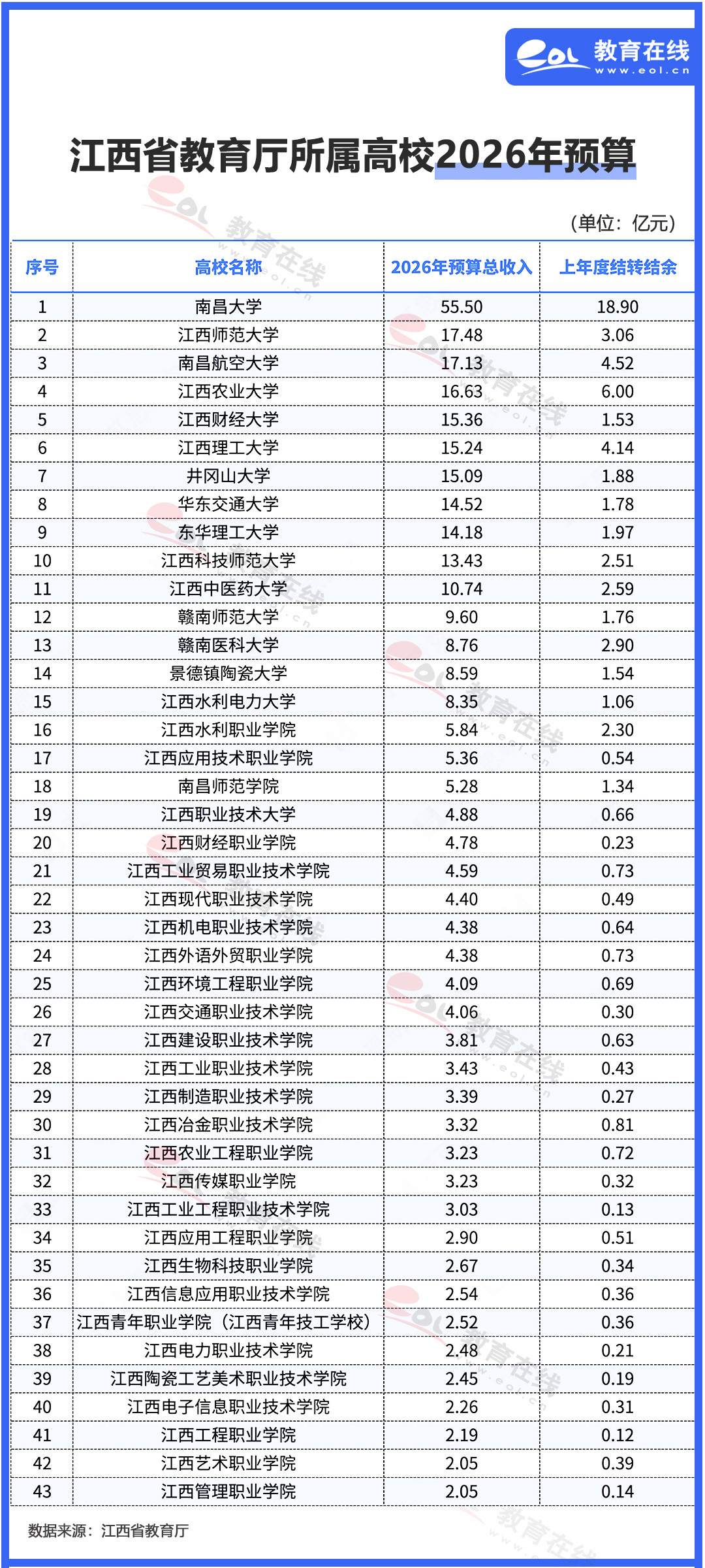 江西省教育廳所屬高校2026年預(yù)算公布:南昌大學(xué)55.5億居首