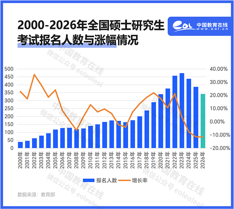 考研熱出現(xiàn)關(guān)鍵轉(zhuǎn)折!教育部公布2026考研報(bào)名人數(shù)繼續(xù)下降45萬, 僅有343萬人。這是自2024年起連續(xù)第三年下降了,此前分別下降36萬,50萬,三年跌去130余萬人。