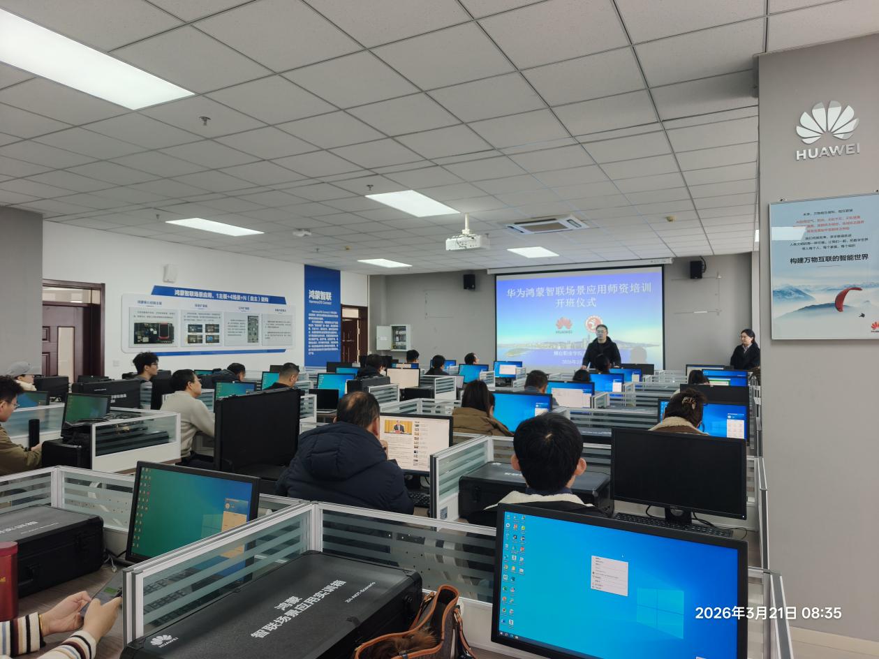 3月14日至15日、21日-22日兩個(gè)周末,由煙臺(tái)職業(yè)學(xué)院教務(wù)處和信息工程系、信息技術(shù)中心聯(lián)合主辦的華為根技術(shù)-昇騰人工智能和開源鴻蒙智聯(lián)場(chǎng)景師資培訓(xùn)在學(xué)校華為產(chǎn)教融合實(shí)踐中心順利舉行。作為校園新學(xué)期“第一訓(xùn)”,本次培訓(xùn)特邀華為資深講師主講,各系專業(yè)教師積極參與,共同學(xué)習(xí)昇騰AI技術(shù)及開源鴻蒙技術(shù)與教學(xué)融合的前沿實(shí)踐。