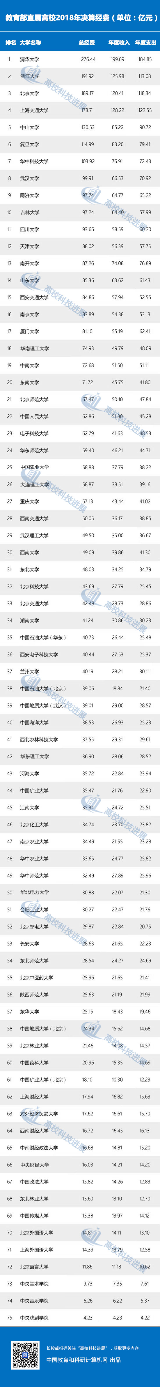 繼教育部公布2018年決算數(shù)據(jù)后,75所教育部直屬高校也都在8月2日公布了2018年的部門決算。
