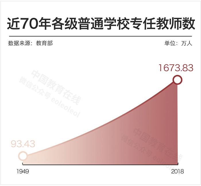 近些年來(lái),我國(guó)教師隊(duì)伍不斷壯大。根據(jù)教育部公布的數(shù)據(jù)顯示,全國(guó)現(xiàn)有各級(jí)各類(lèi)專(zhuān)任教師1673.83萬(wàn)人,比1949年的94.43萬(wàn)人增長(zhǎng)近17倍,這個(gè)龐大的職業(yè)群體支撐起世界上最大規(guī)模的教育體系。