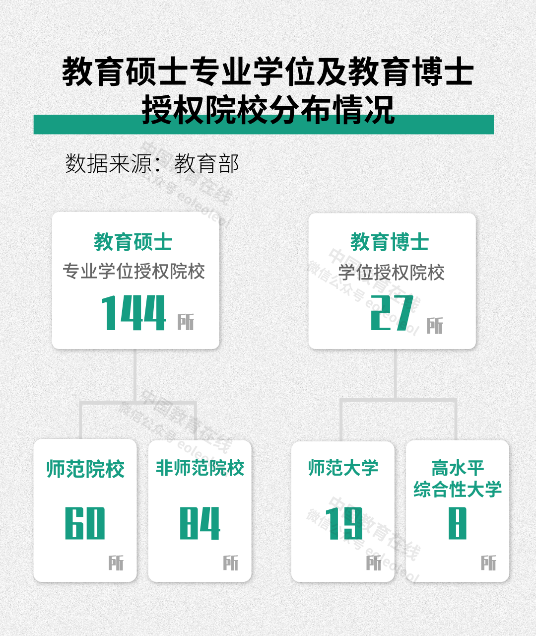我國(guó)具有教育碩士專(zhuān)業(yè)學(xué)位授權(quán)院校144所,具有教育博士學(xué)位授權(quán)院校27所。