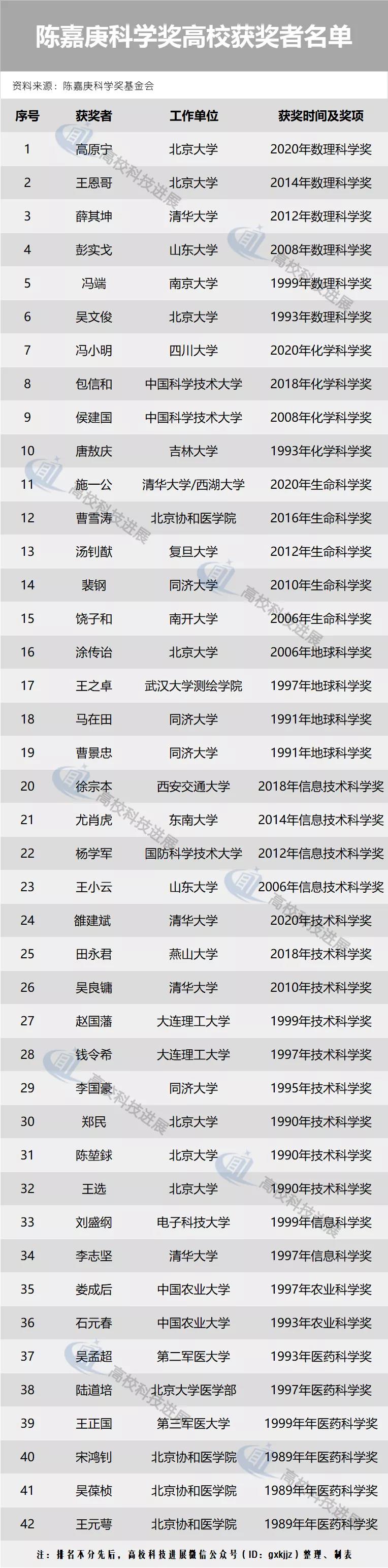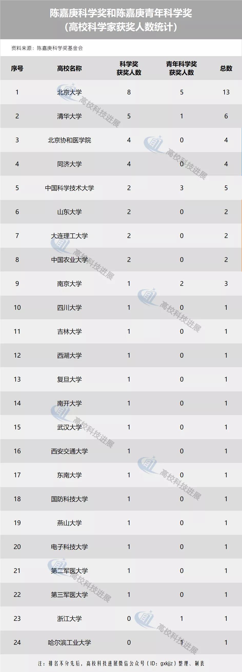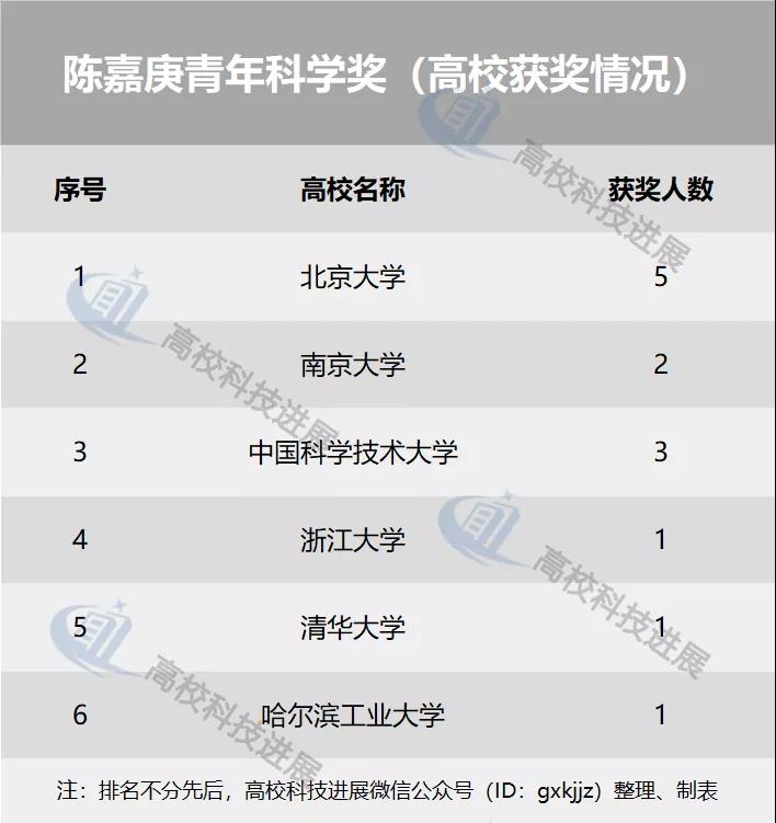 陳嘉庚青年科學獎:北京大學共有3位青年才俊獲得陳嘉庚青年科學獎的數(shù)理科學獎、化學科學獎、信息技術科學獎,南京大學有1位青年才俊獲得陳嘉庚青年科學獎地球科學獎。
