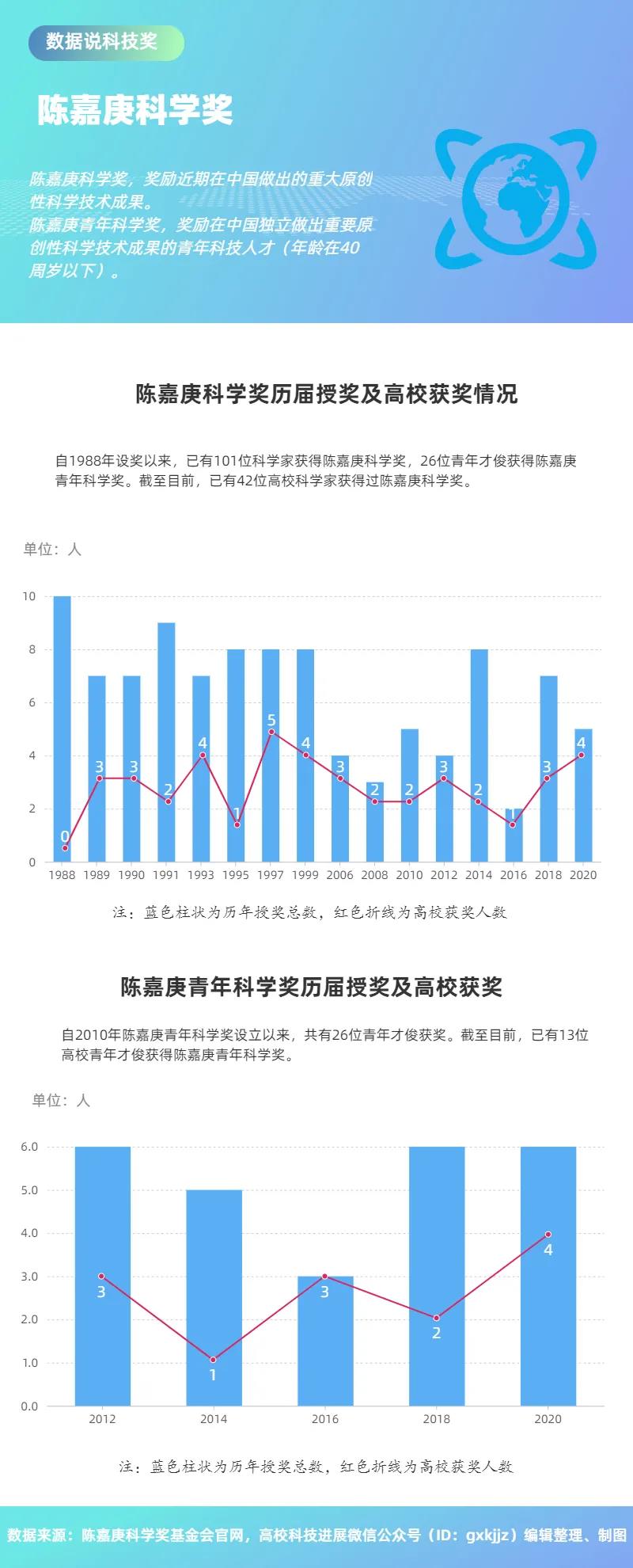據(jù)高??萍歼M展統(tǒng)計,自1988年設獎以來,已有101位科學家獲得陳嘉庚科學獎,26位青年才俊獲得陳嘉庚青年科學獎。