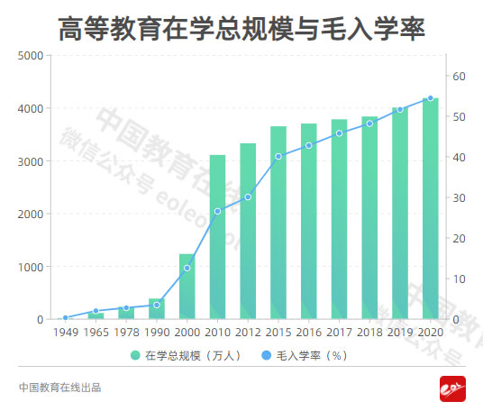 高等教育從11.7萬(wàn)人到4183萬(wàn)人