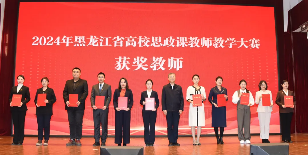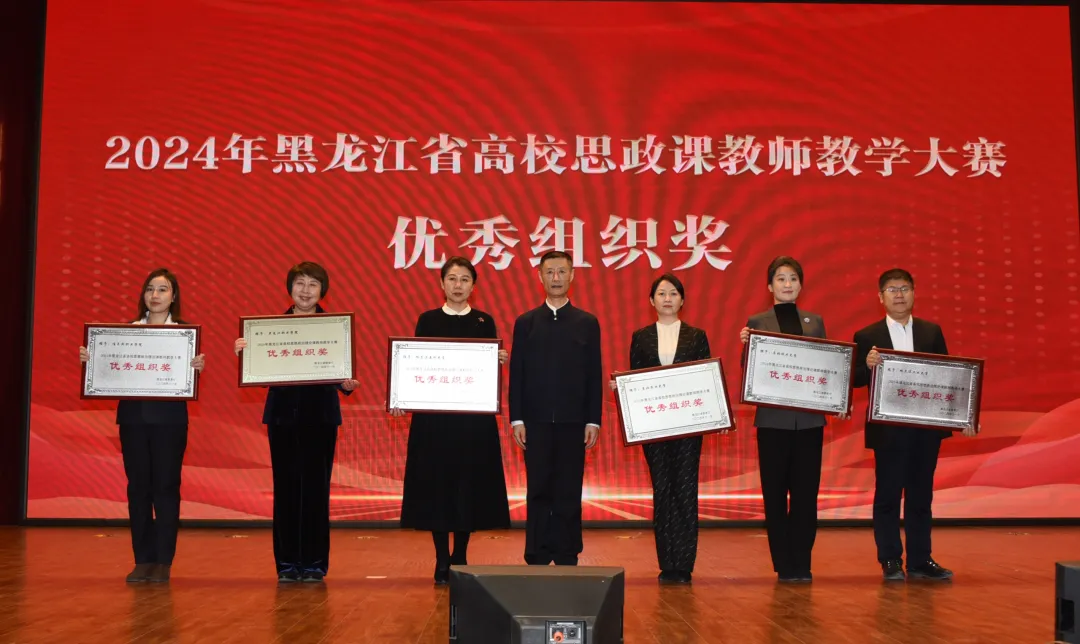 活動中,為5所黑龍江省首批高等職業(yè)學(xué)校特色馬克思主義學(xué)院(思政課教研部)進行授牌,為2024年全省高校思政課教師教學(xué)大賽獲獎教師代表和“優(yōu)秀組織獎”獲獎高校頒發(fā)證書和獎牌。