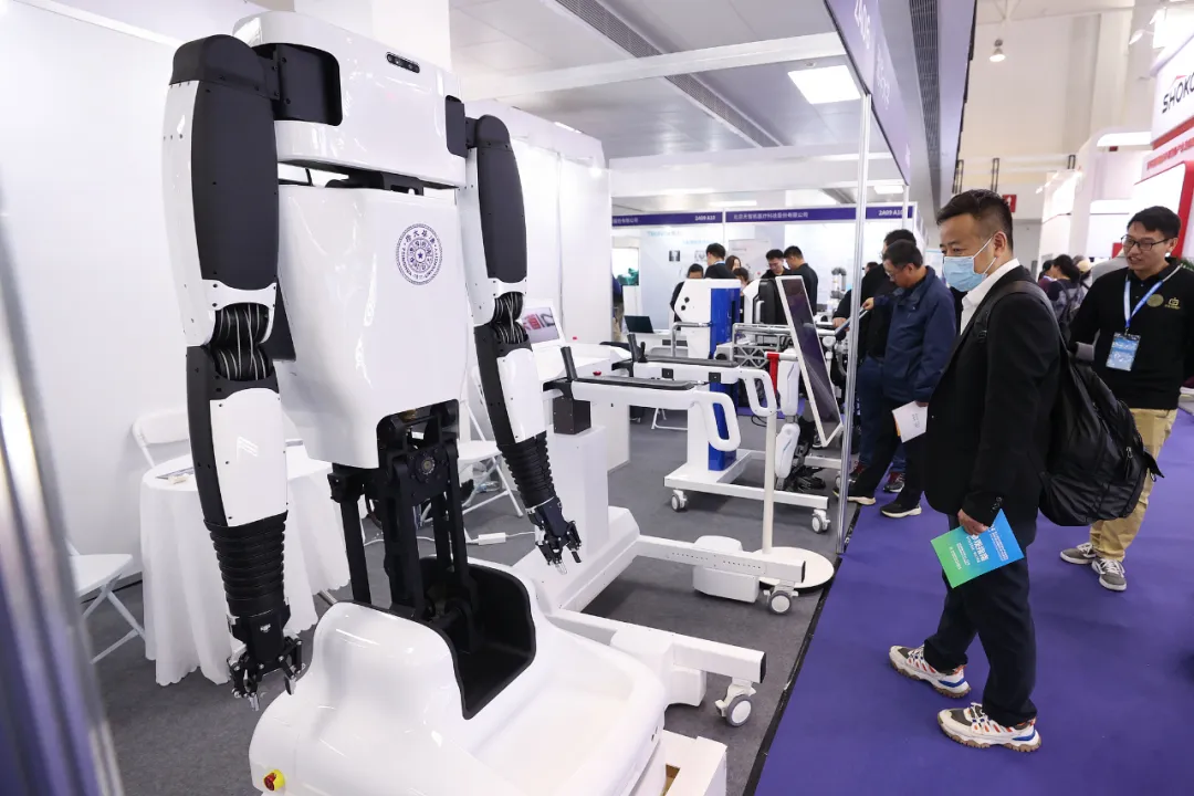 △第十屆北京國(guó)際老齡產(chǎn)業(yè)博覽會(huì)上展示的護(hù)理機(jī)器人。