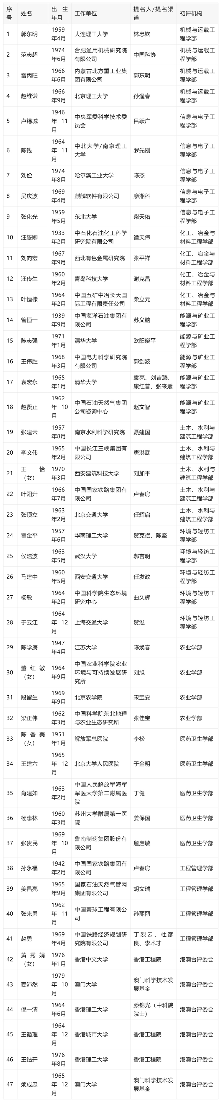 中國(guó)工程院公布第十六屆光華工程科技獎(jiǎng)初評(píng)候選人名單